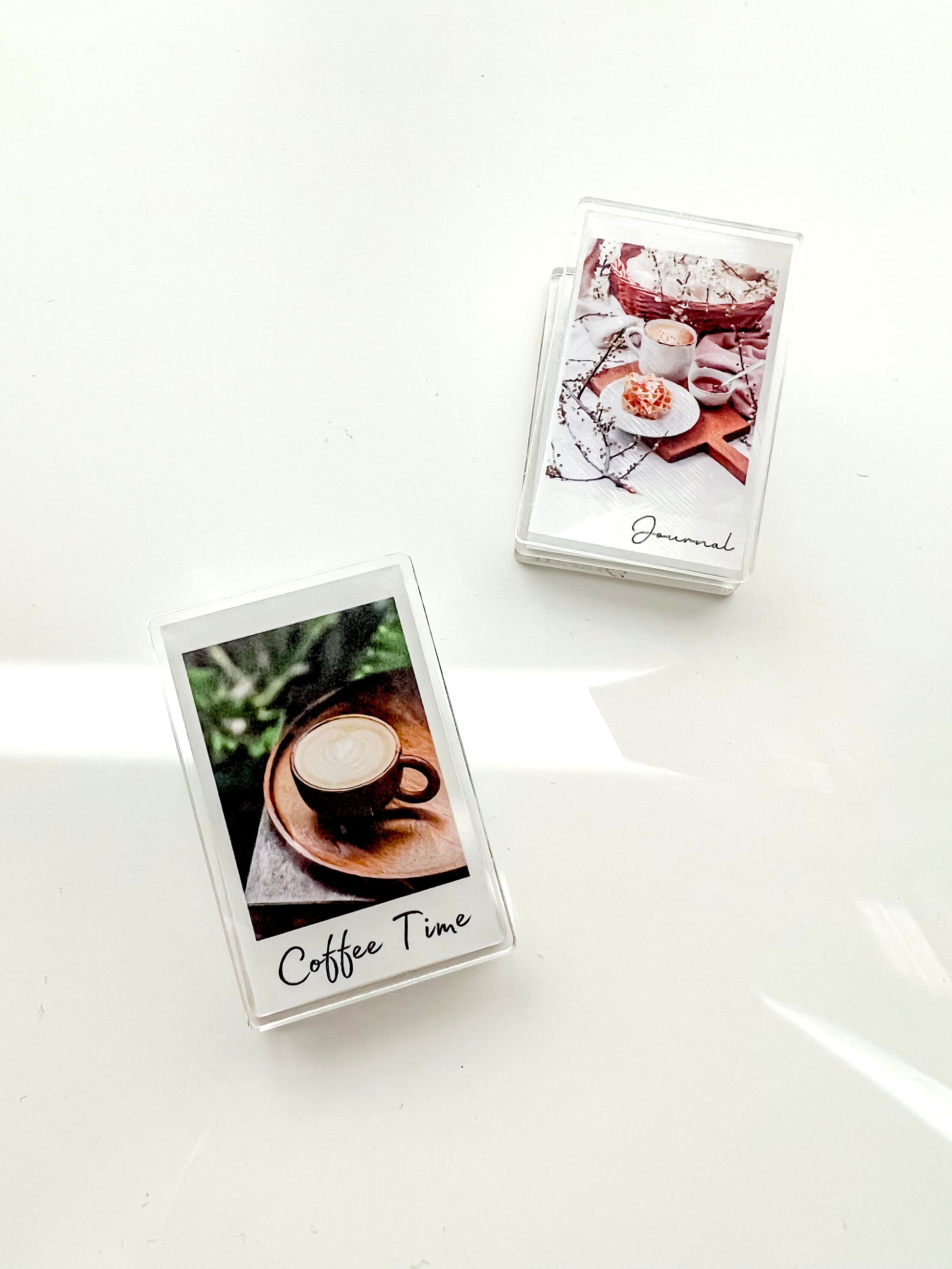 1. **INSTAX Inspired Design**: Drawing inspiration from the sleek and minimalist style of INSTAX, our acrylic clips boast clean lines and modern aesthetics that complement any planner or journal layout.