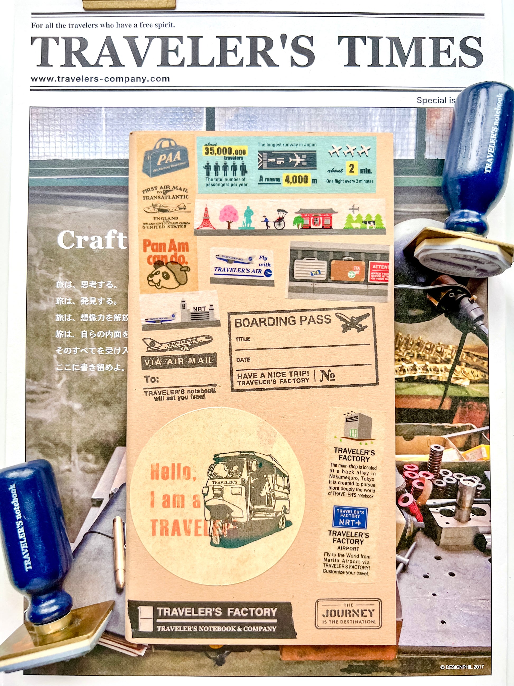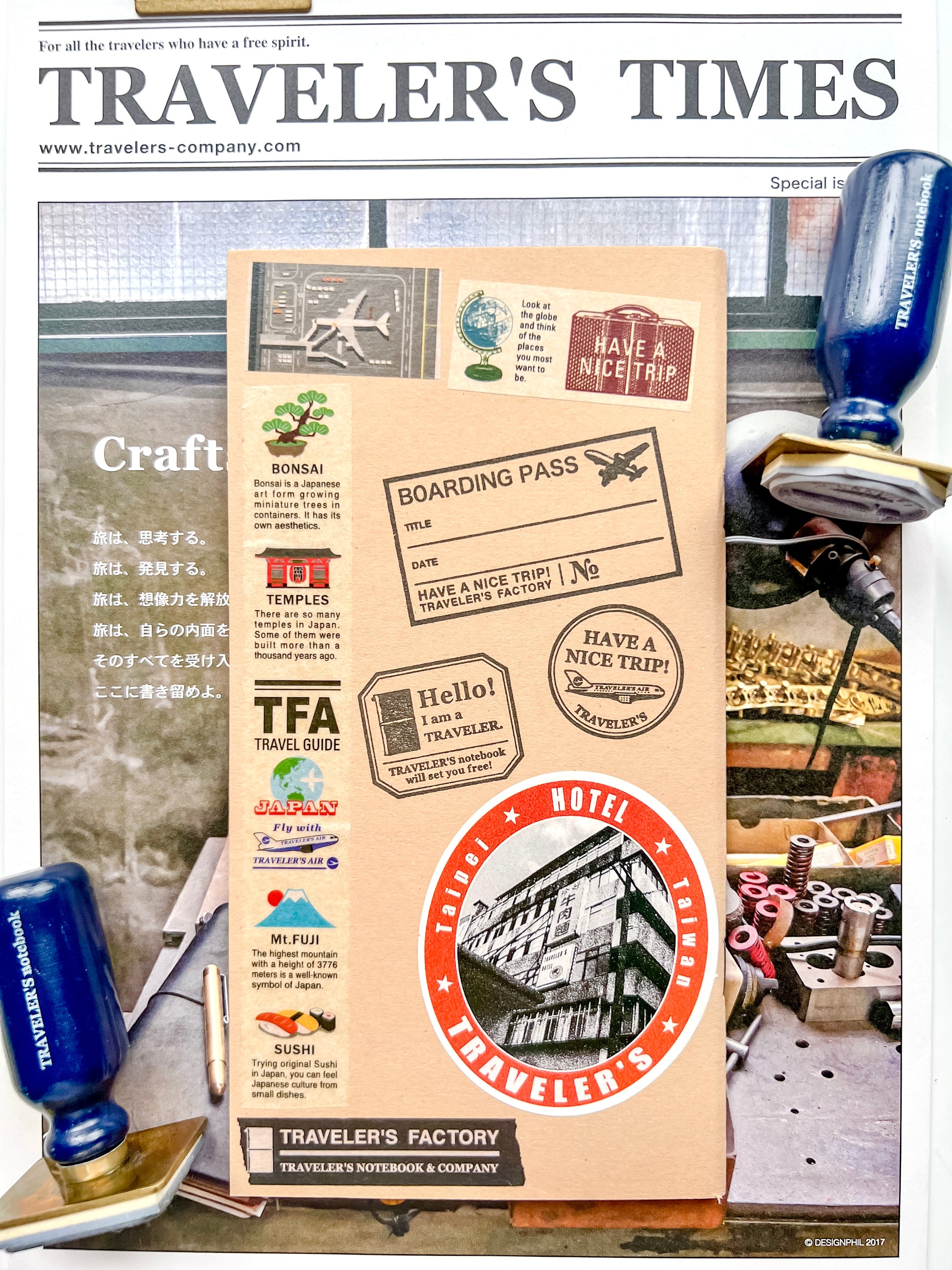 Official Traveler’s Factory Washi Tapes and Official Discontinued Stamps were used.