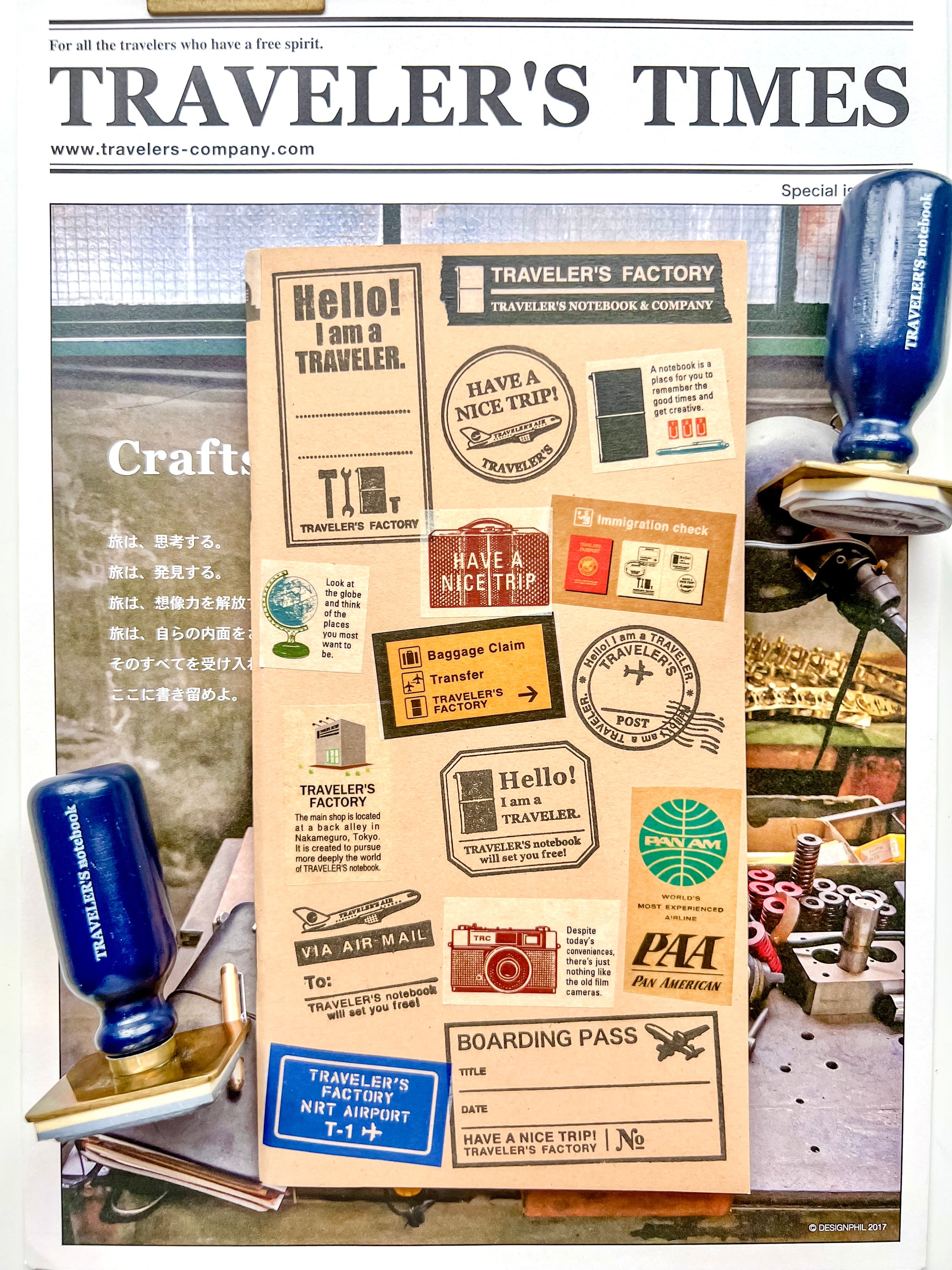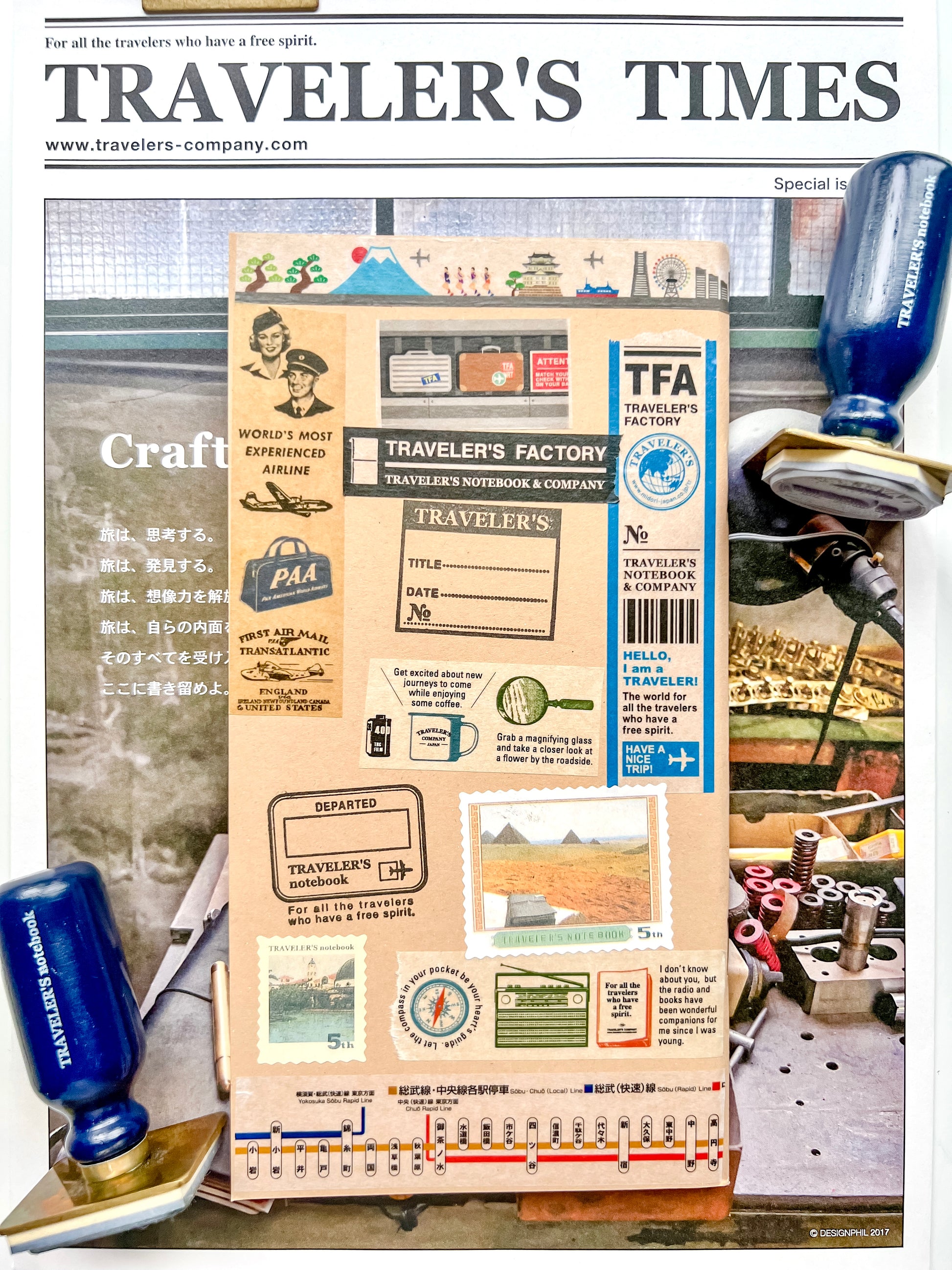 Official Traveler’s Factory Washi Tapes and Official Discontinued Stamps were used.