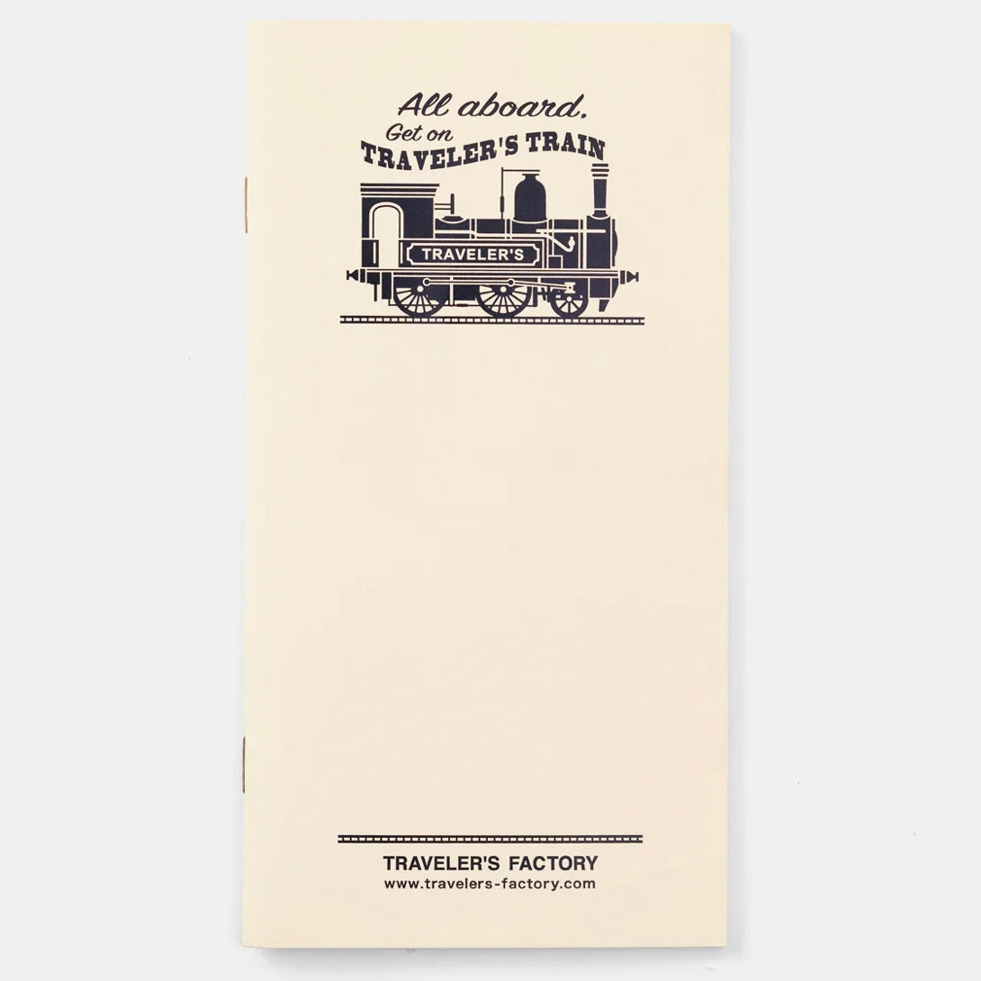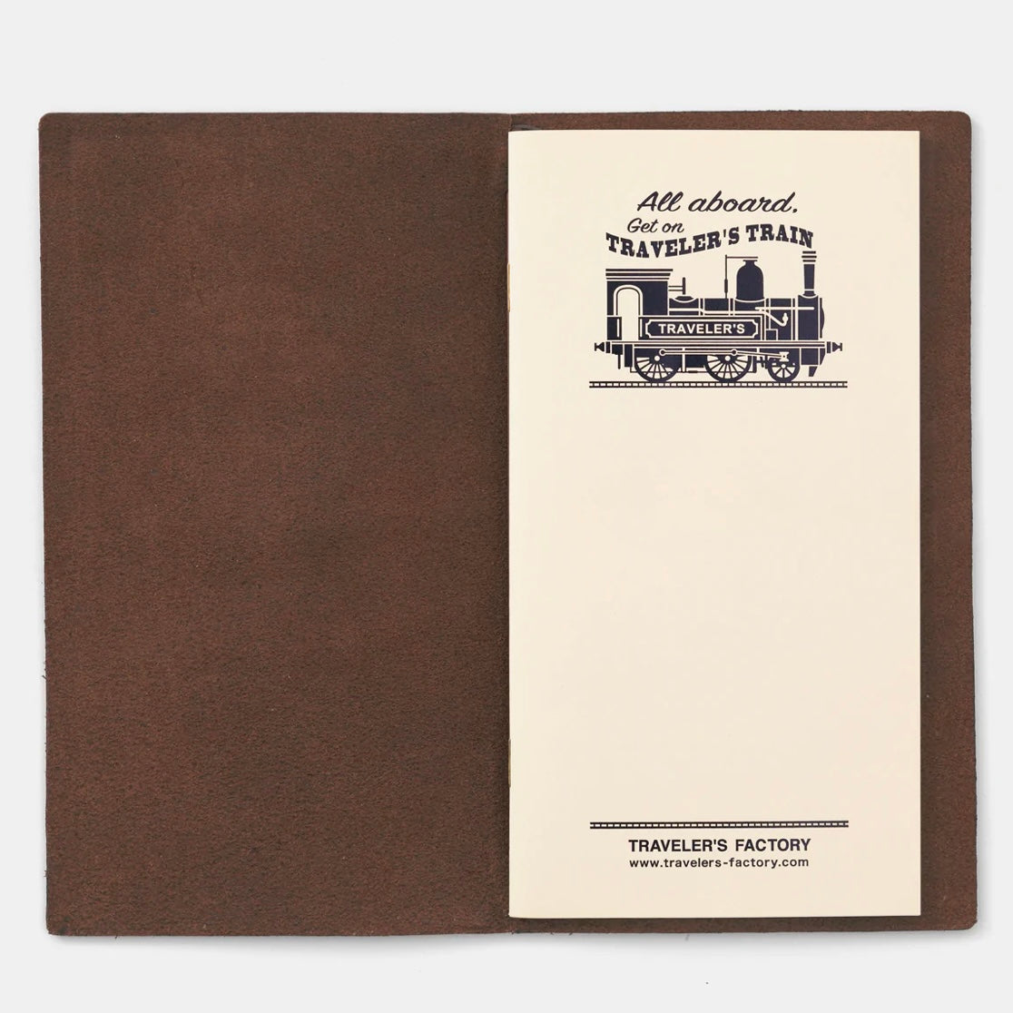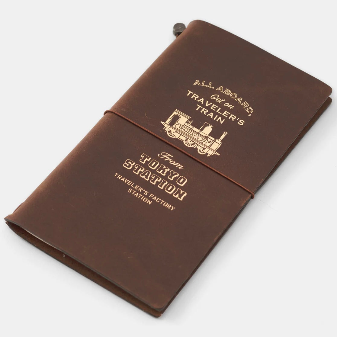 On a brown leather cover, the traveler's train departing from Tokyo Station, the starting point of Japanese railways, is represented by gold stamping. On the cover of the refill set inside, the Traveler's Train is expressed with black stamping. The inner paper uses MD paper cream with excellent writing properties. A traveler's notebook is perfect for rail travel.