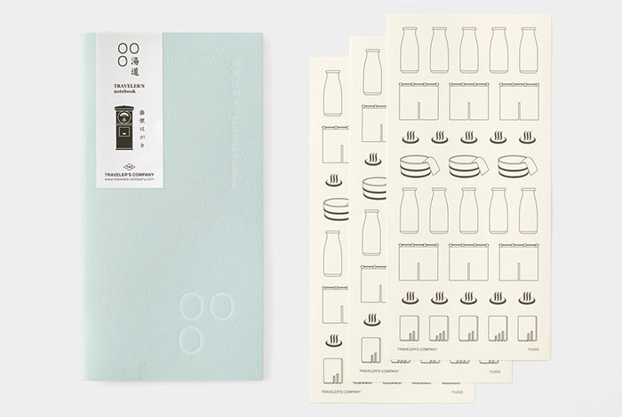 It is a notebook to keep your record of your bathing in a hot spring soaking in hot water like a diary. Feel free to use the icon stickers to write your satisfaction score on the shoe box key lock sticker or to note what you drank after your bath on the milk bottle sticker. MD Paper is used for the inside paper of the refill.
