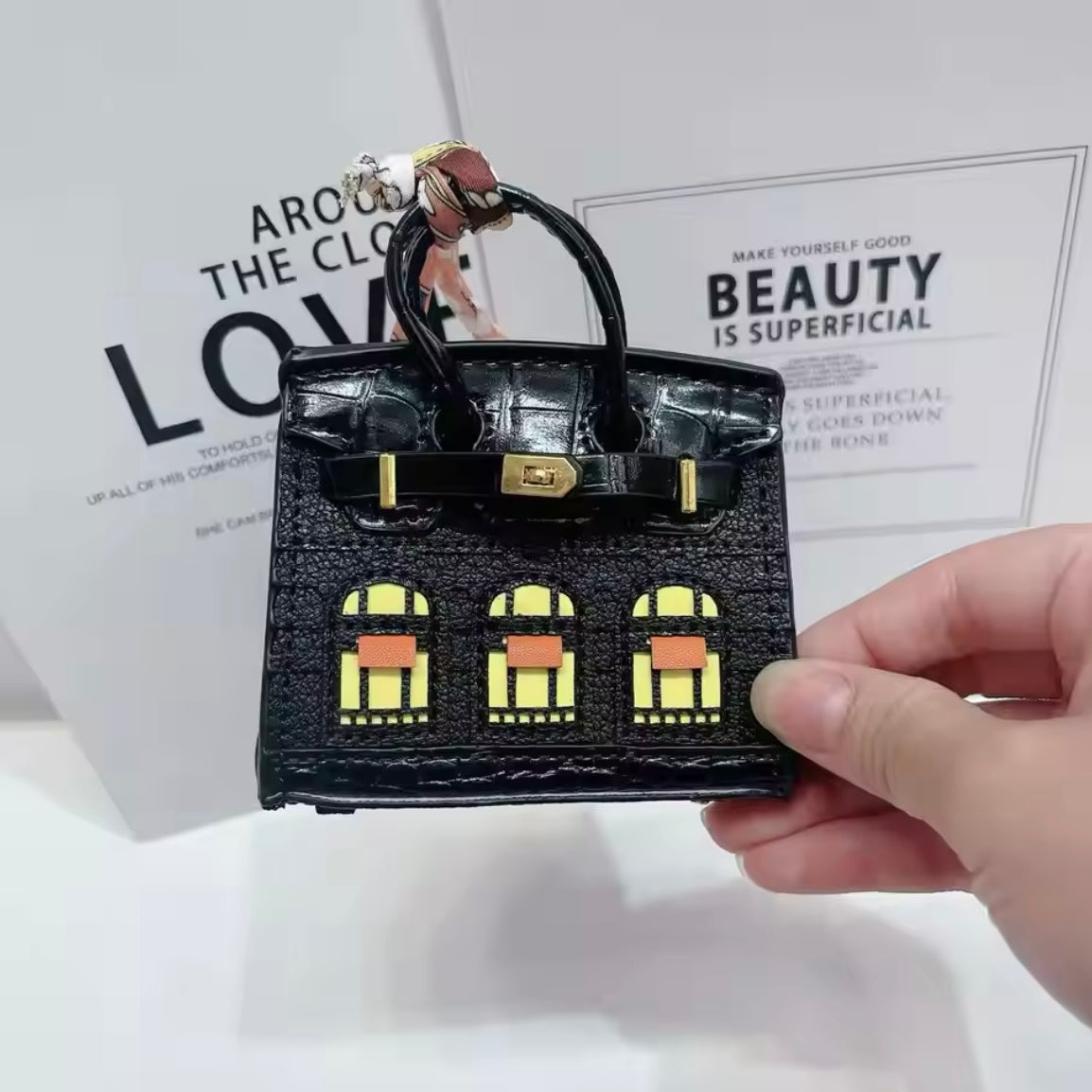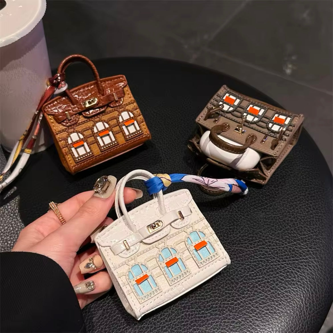 Birkin Windows inspired mini handbag for AirPods or Earphones. May be used as a charm as well.