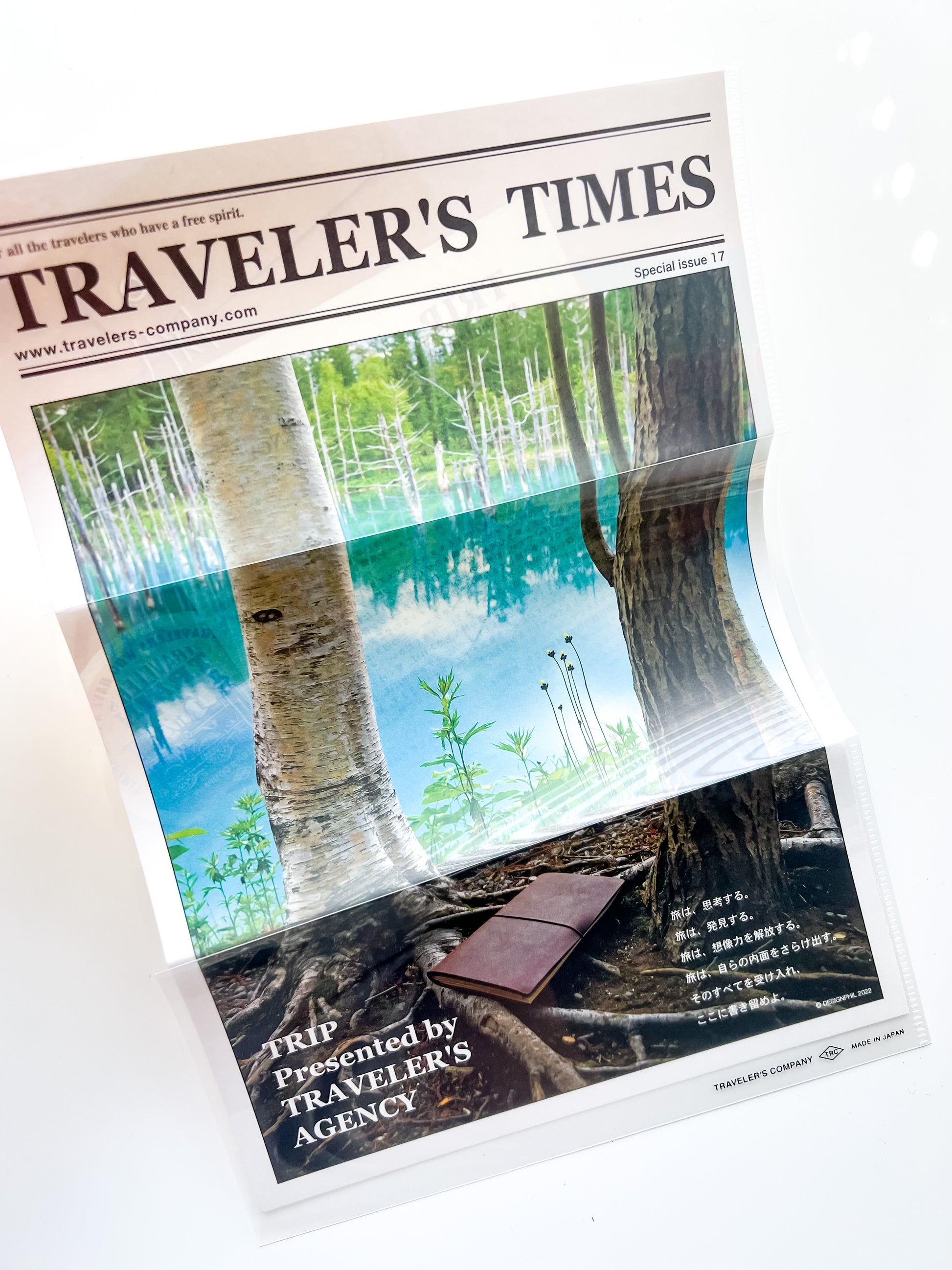 Issue #17 Travelers Times paper in a trifold pocket folder.