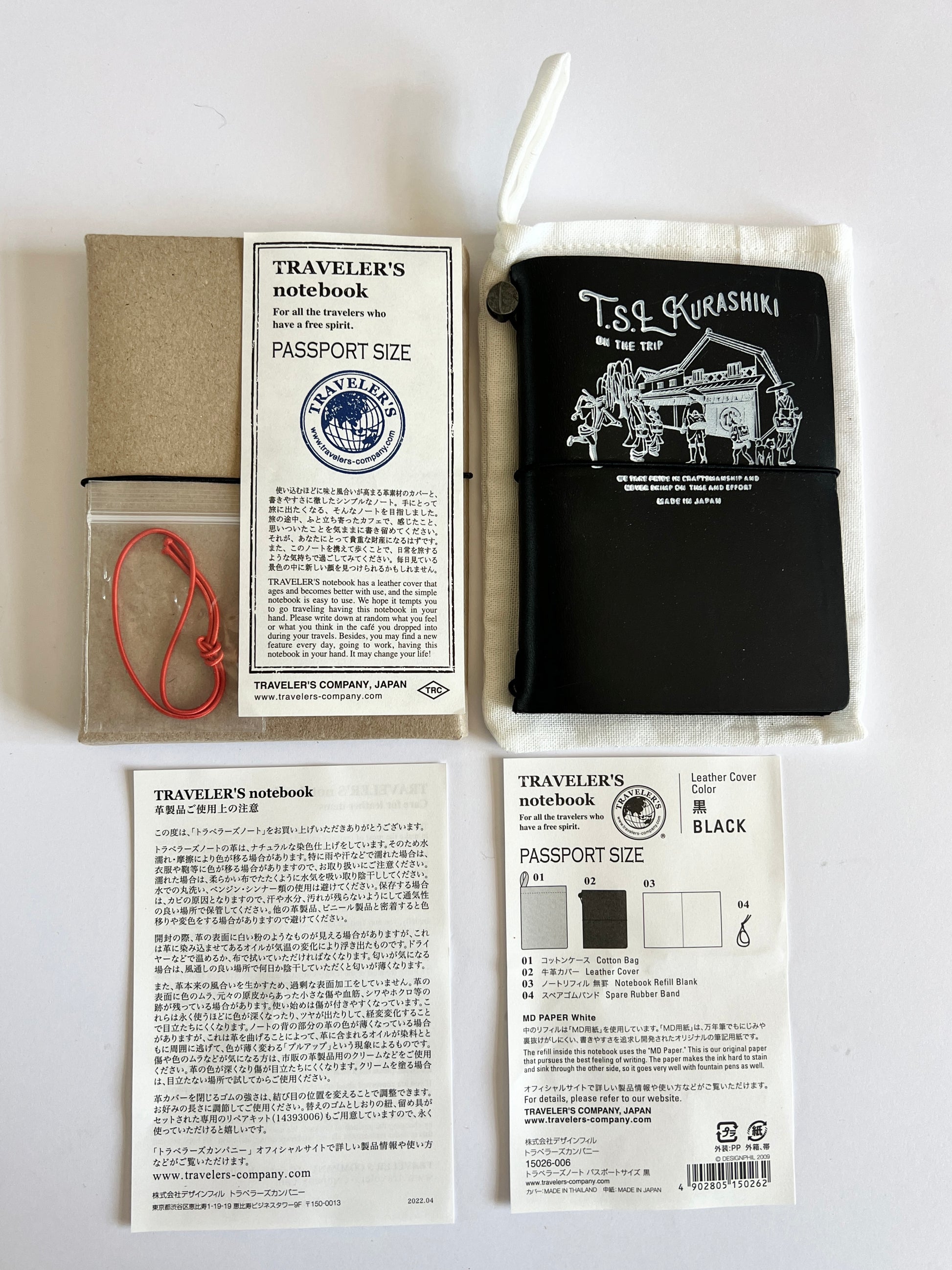 Outer box Cotton case (fabric) Cover body (made of cowhide) Spare rubber band (red)