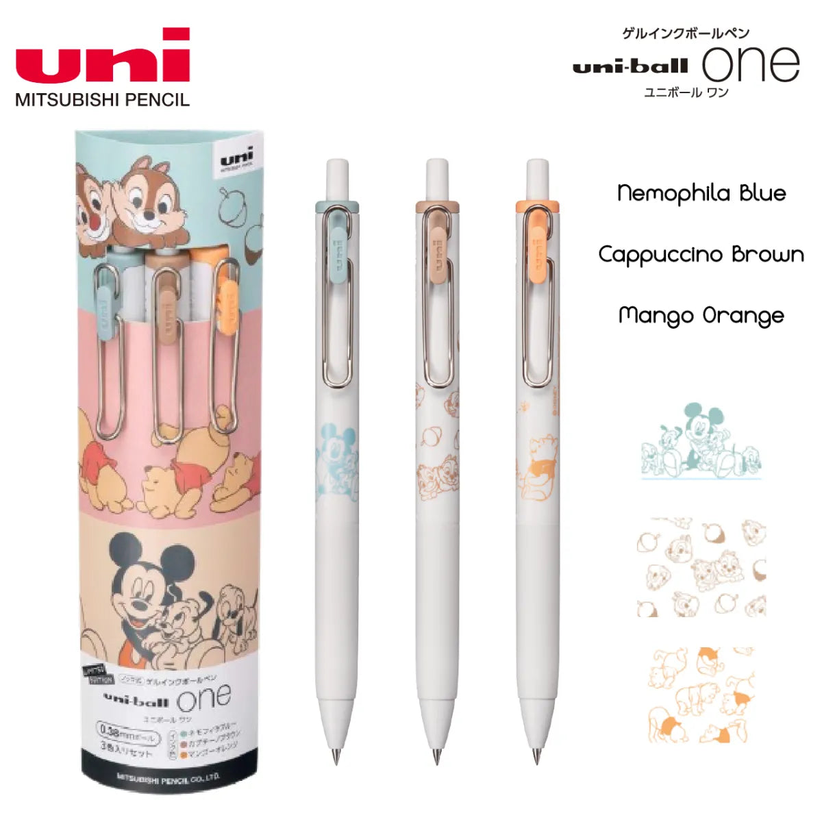 Mitsubishi Pencil Uni-Ball One 0.38mm Gel Ink Ballpen Limited Edition Set A - Mickey