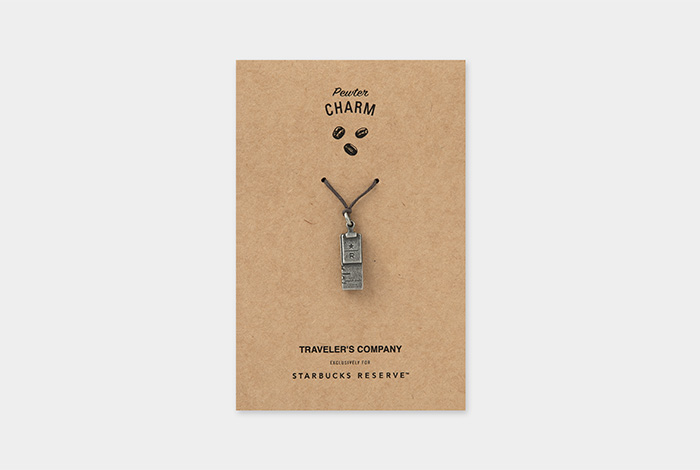 Stickers set includes nine different stickers, including one featuring the Roastery’s iconic Copper cask and another with a COFEE JOURNEY theme design. And Pewter Charm is designed with a Starbucks Reserve® coffee bean package motif. These items are recommended for customizing your TRAVELER’S notebook as well as your favorite tools that you carry with you every day.