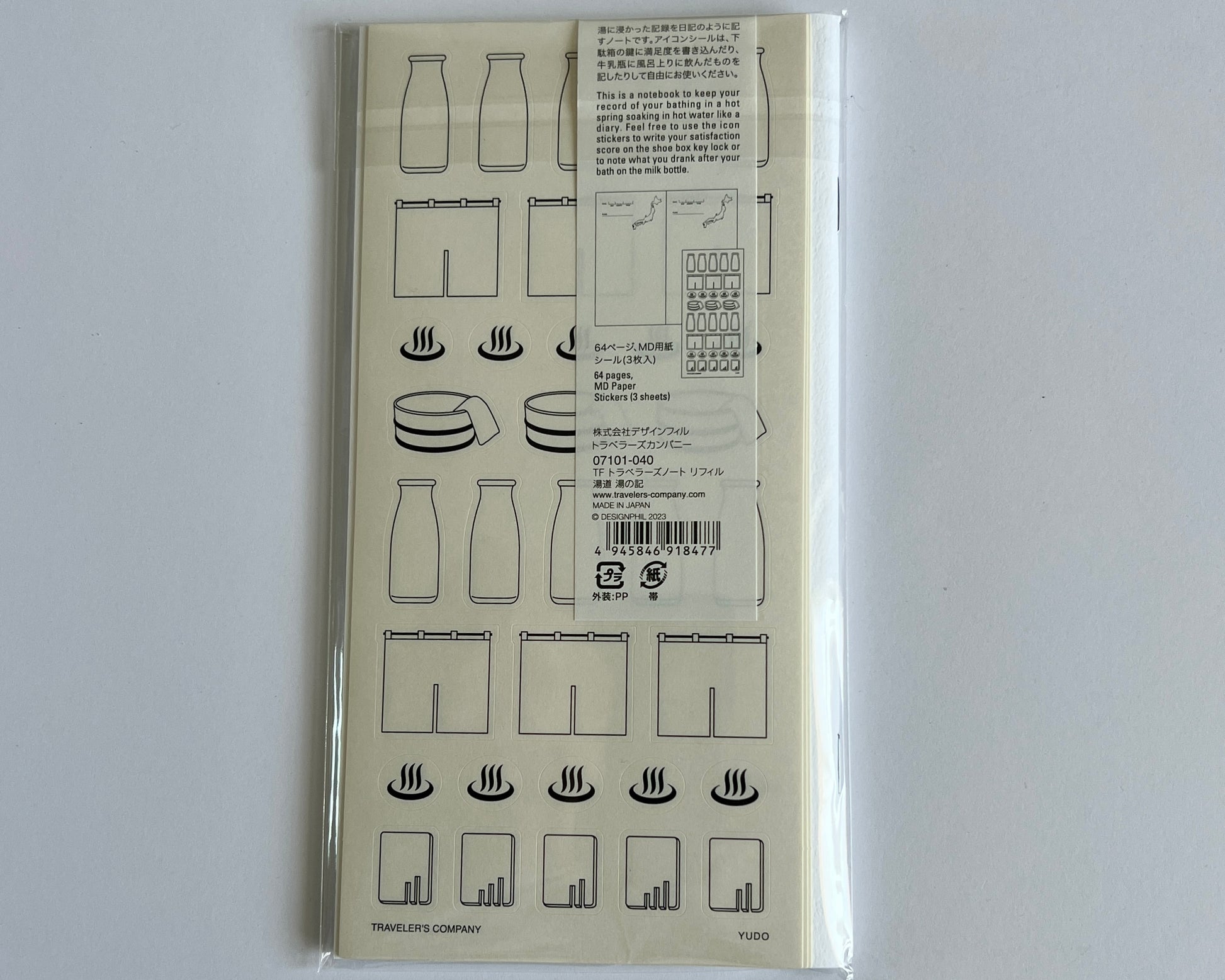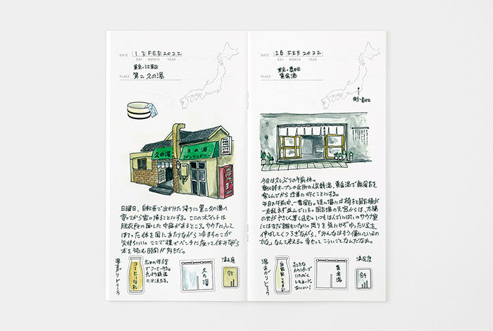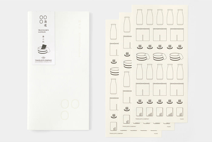 It is a notebook to keep your record of your bathing in a hot spring soaking in hot water like a diary. Feel free to use the icon stickers to write your satisfaction score on the shoe box key lock sticker or to note what you drank after your bath on the milk bottle sticker. MD Paper is used for the inside paper of the refill.