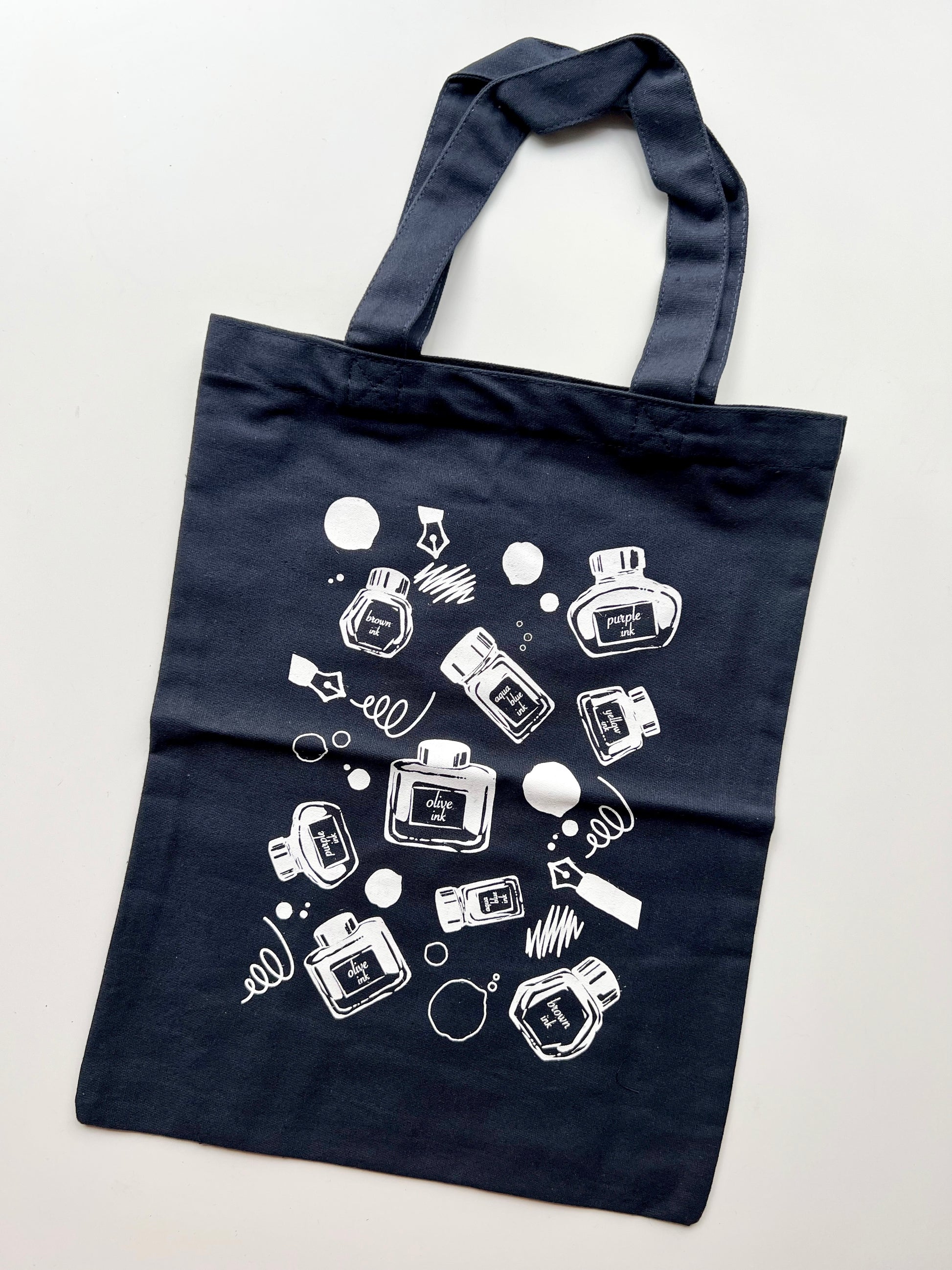 Canvas Tote Fountain Pen Inks Design. Dark Blue