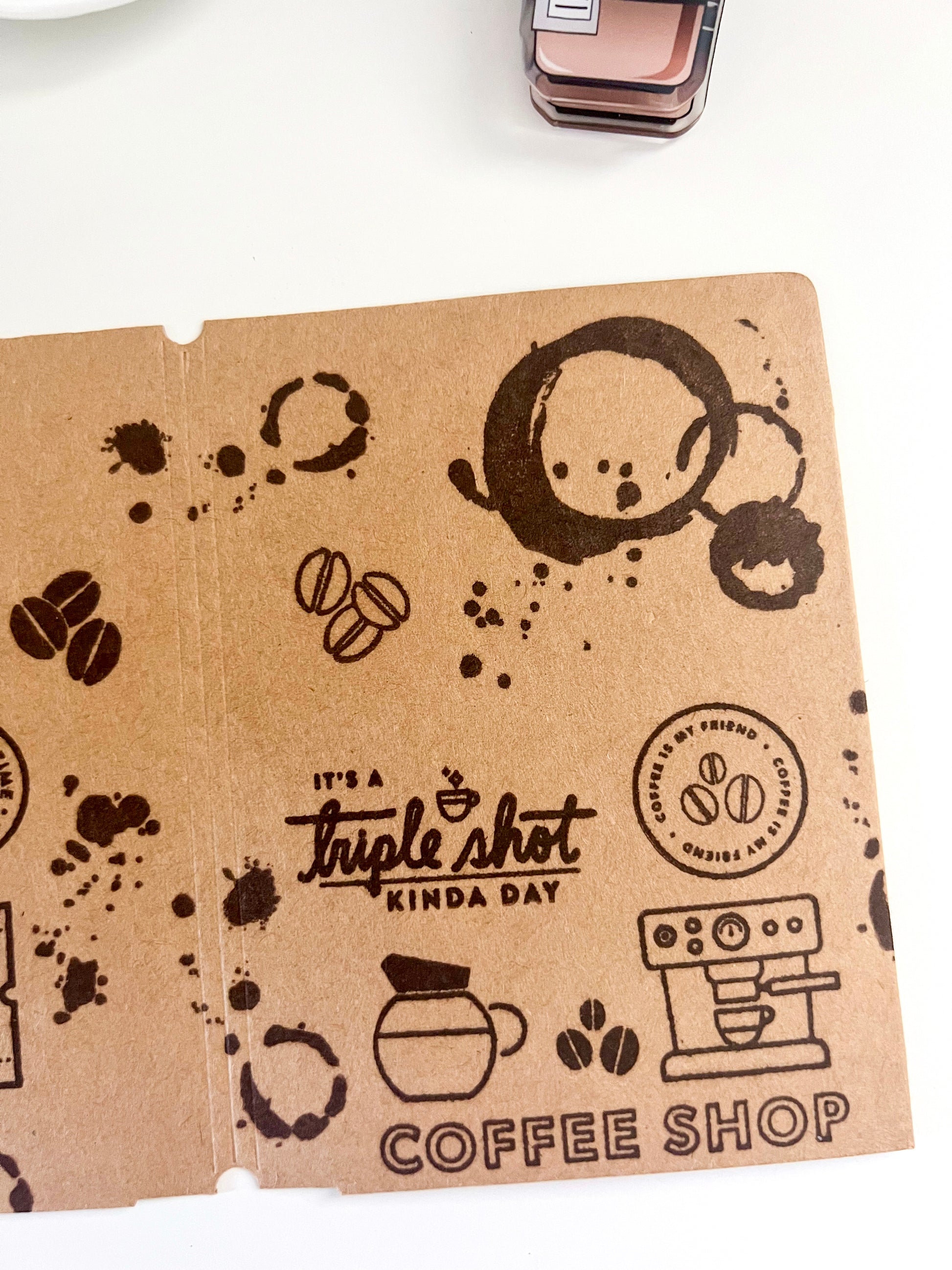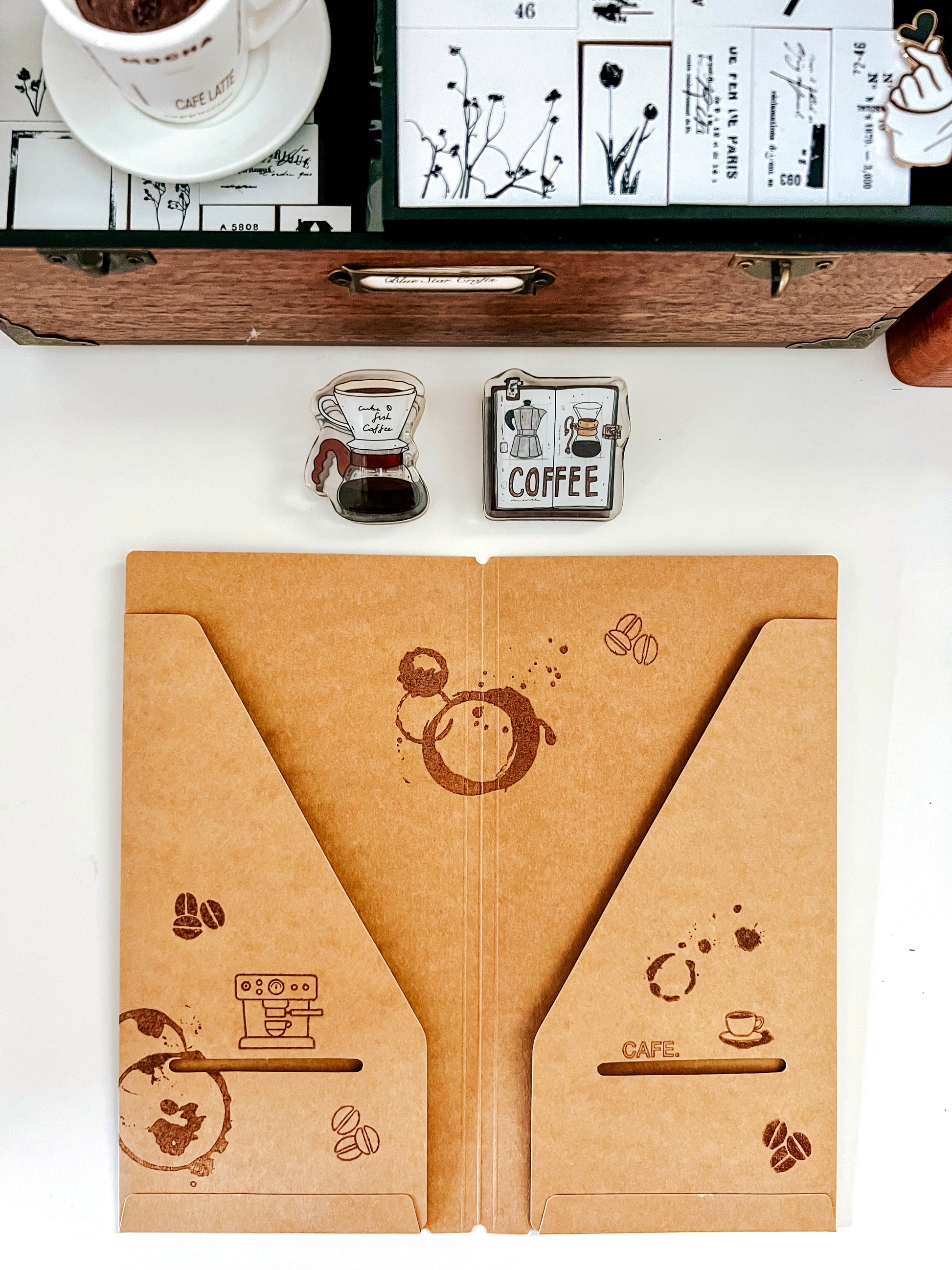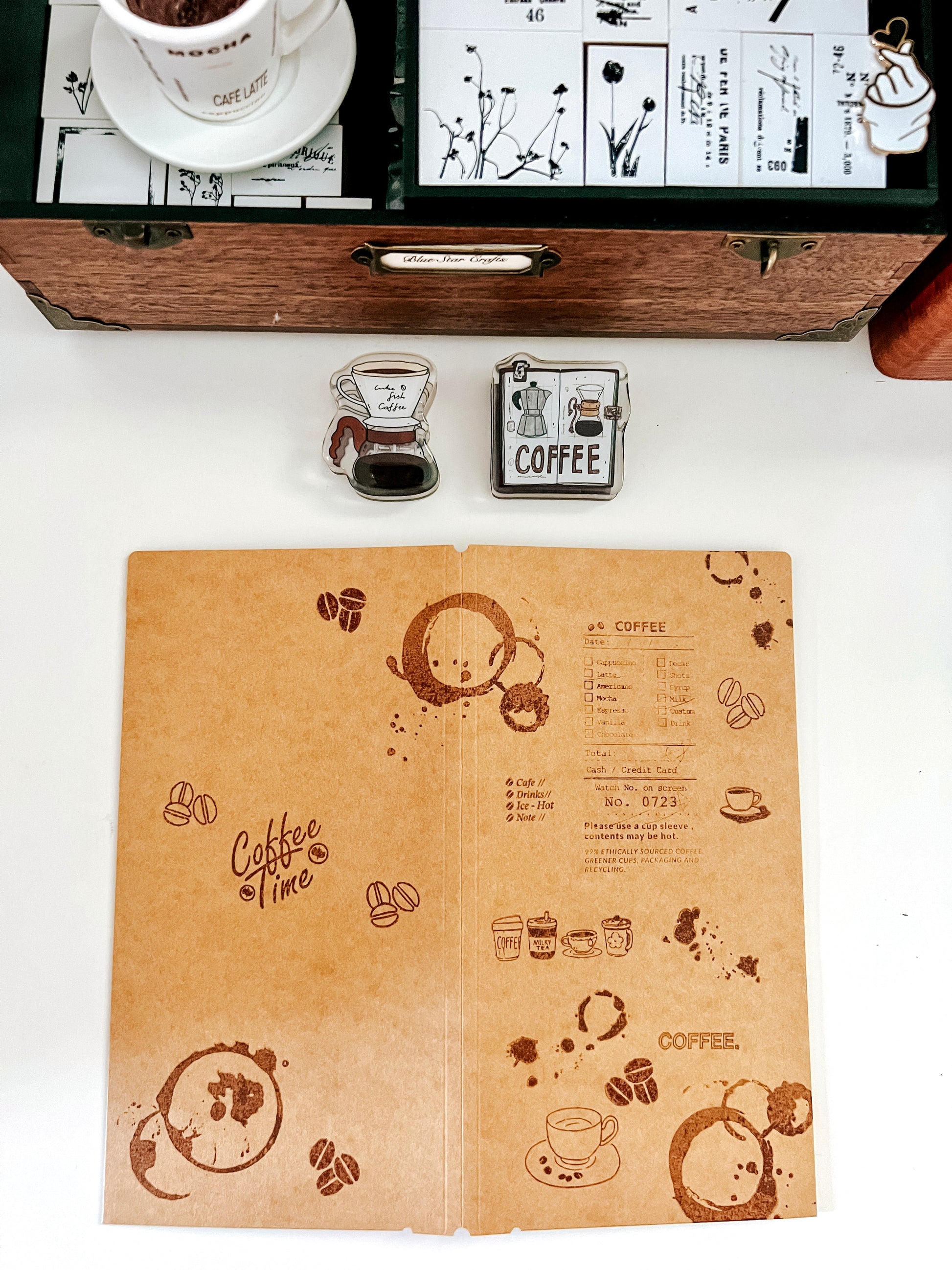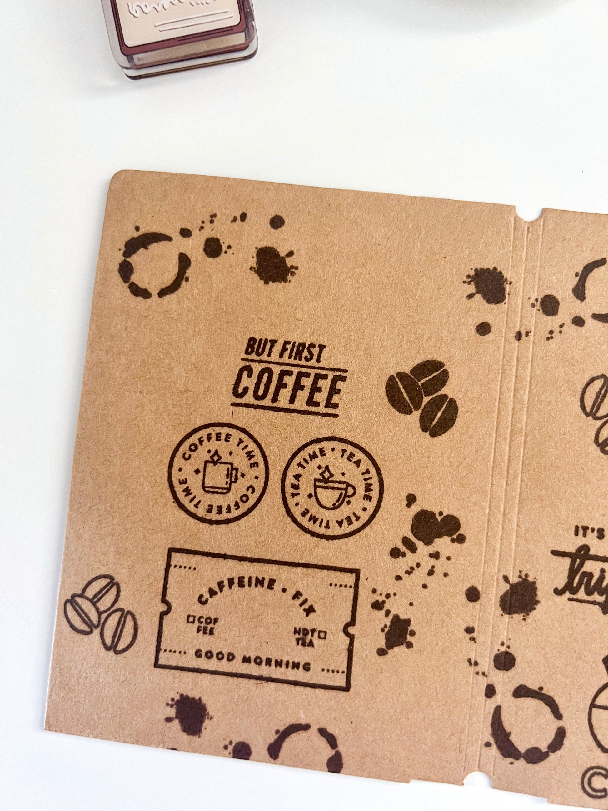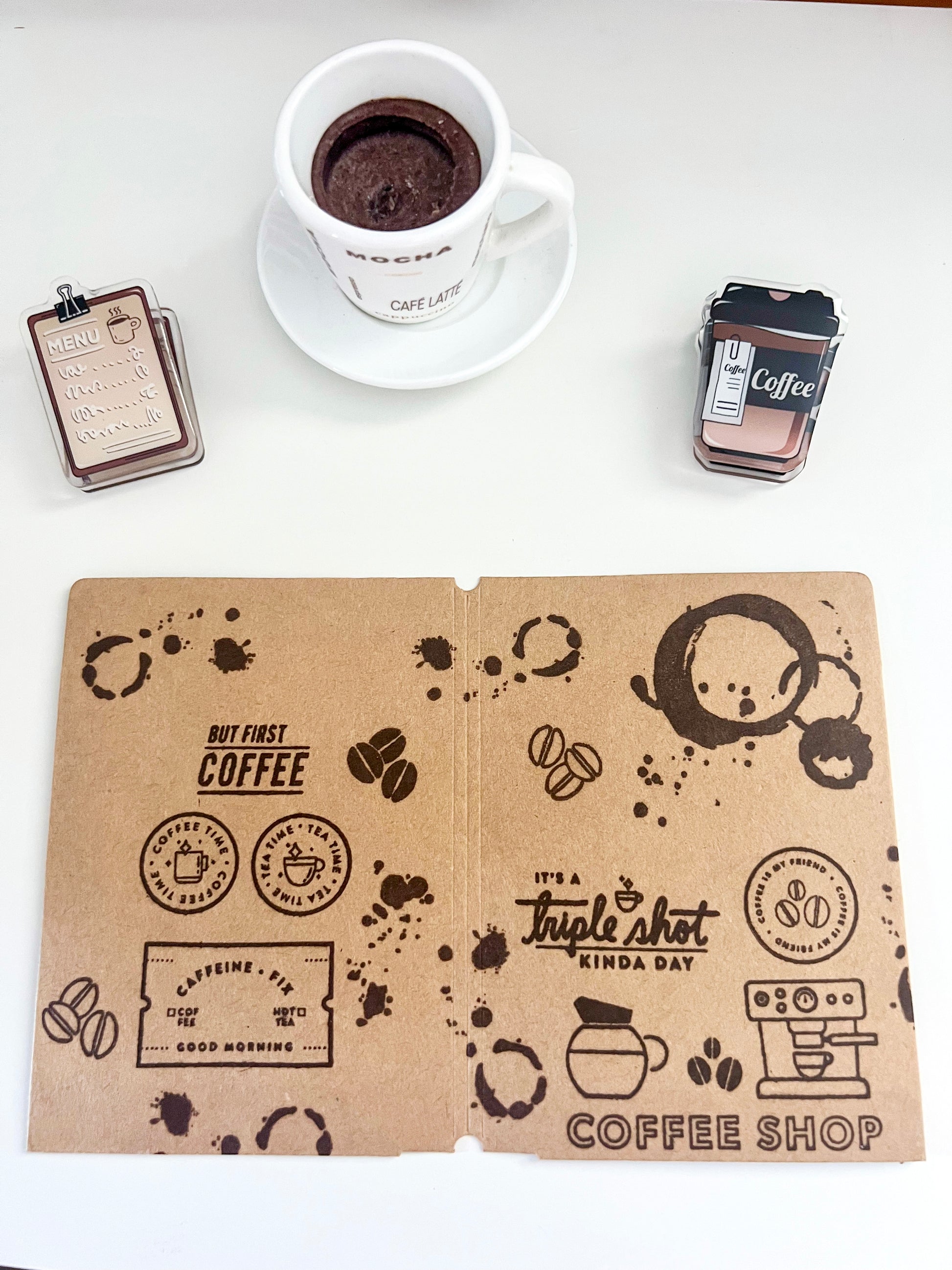 Decorated with Coffee theme stamps. Kraft file folders are hand stamped, so each one will be unique and there may be imperfections. No two inserts will be exactly the same (unless you request the same design and I will try my best to re-create it for you).