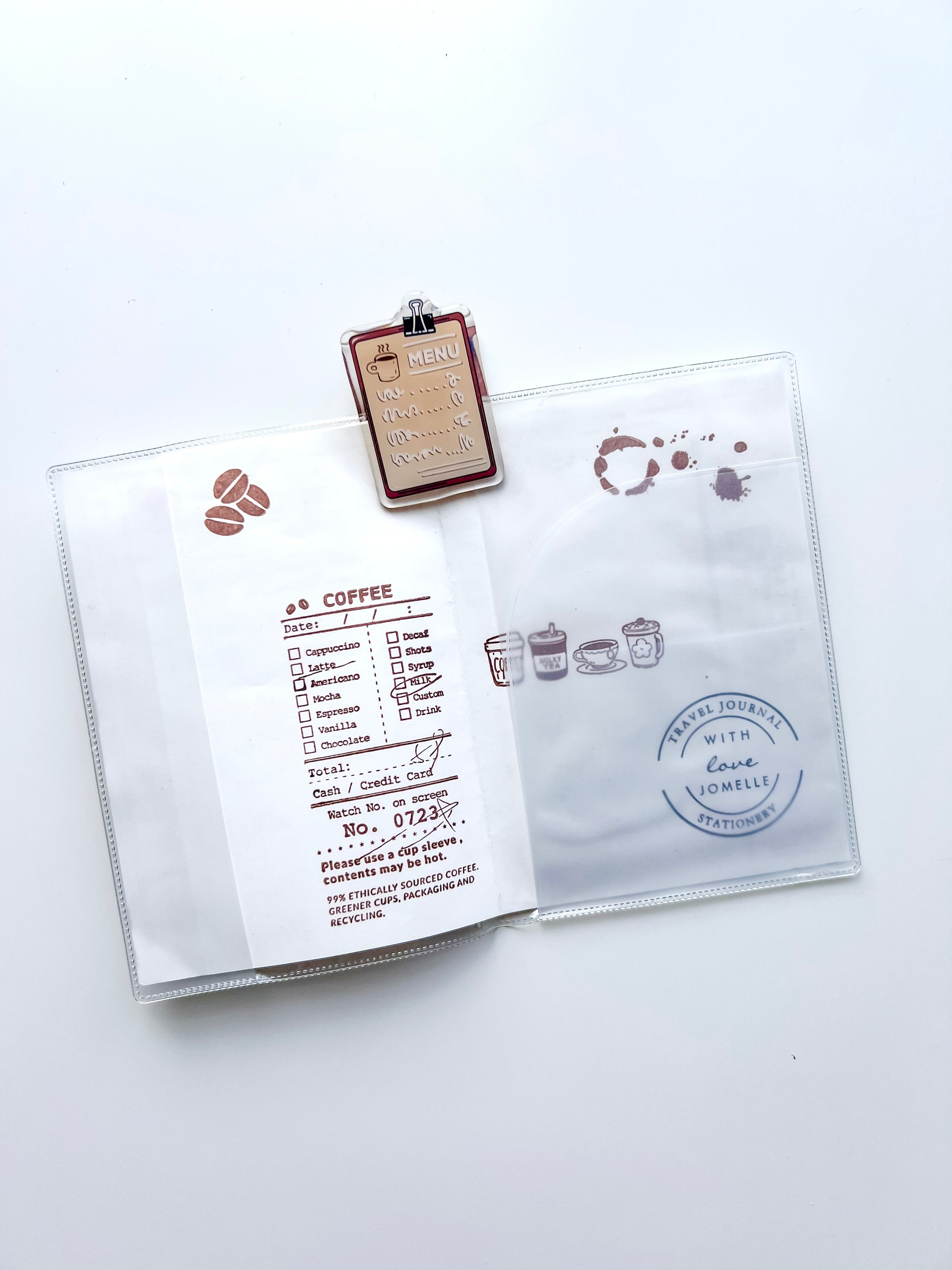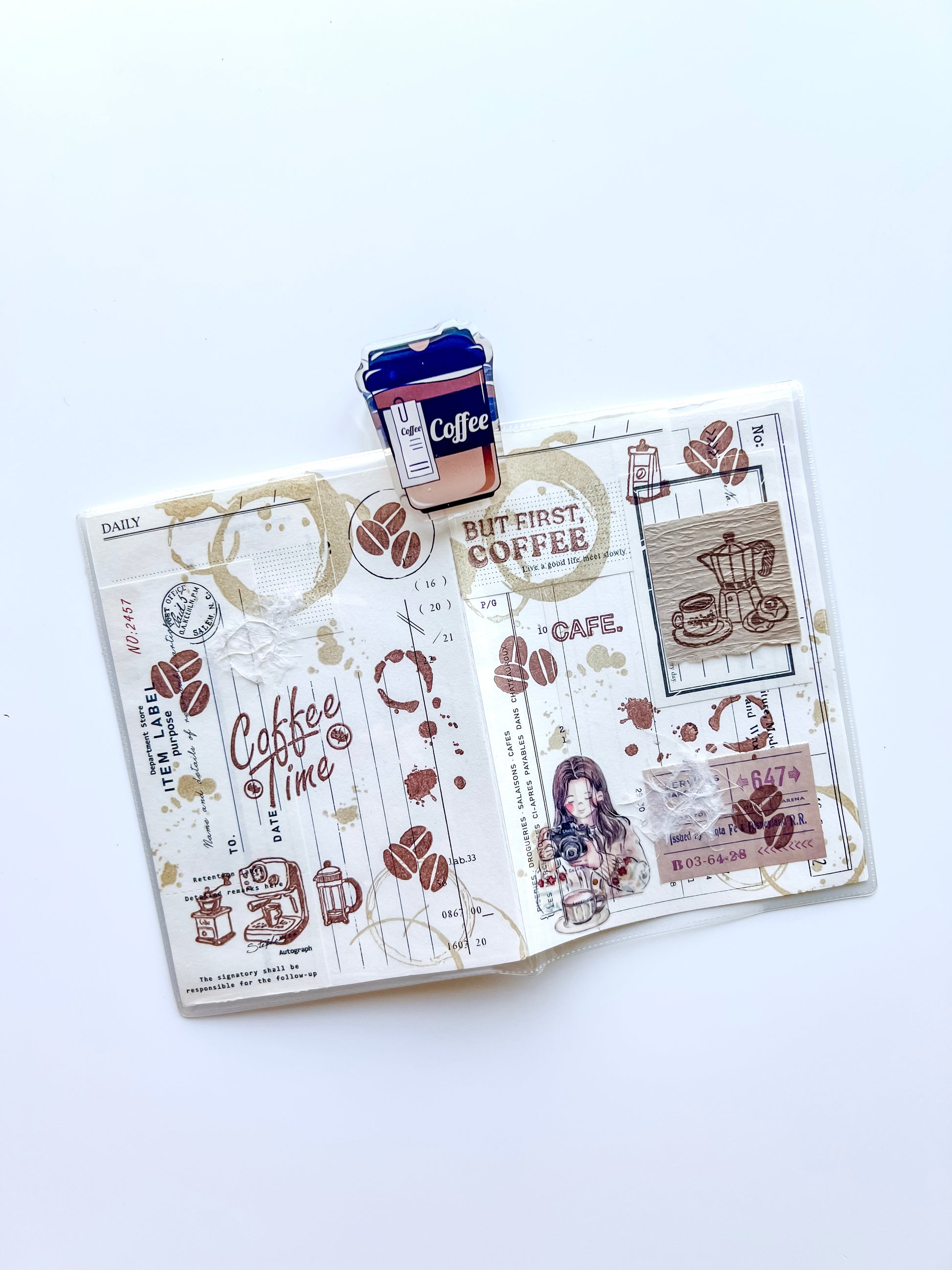 They are handmade, so each one will be unique and there may be imperfections. No two inserts will be the same (unless you request the same design and I will try my best to re-create it for you). Many name brand stationery supplies such as PET tapes and stamps were used to create this passport cover.