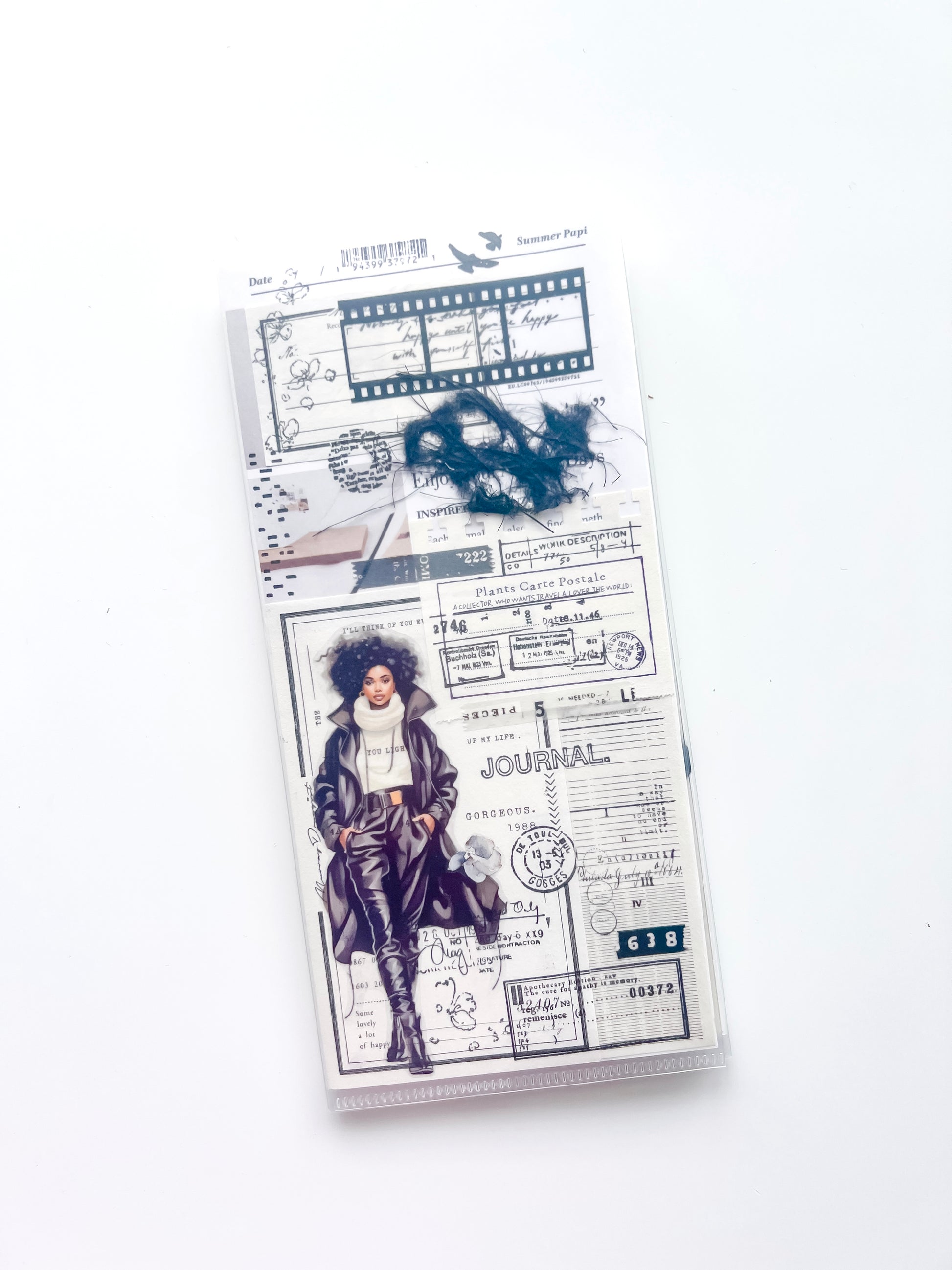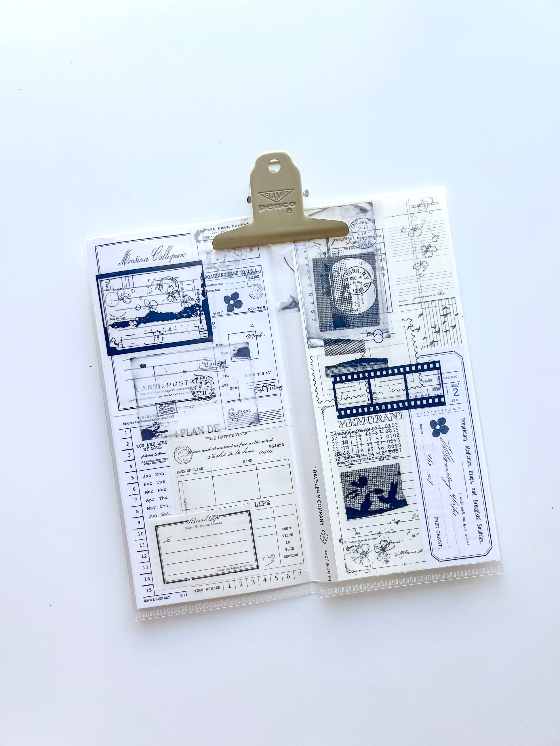 You can neatly fold and carry A4-sized papers, such as e-tickets, hotel vouchers, itineraries, copies of maps, etc., which you often carry with you on your travels or in your daily work. Please fold it in three and place it between the traveler's notebook leather cover.
