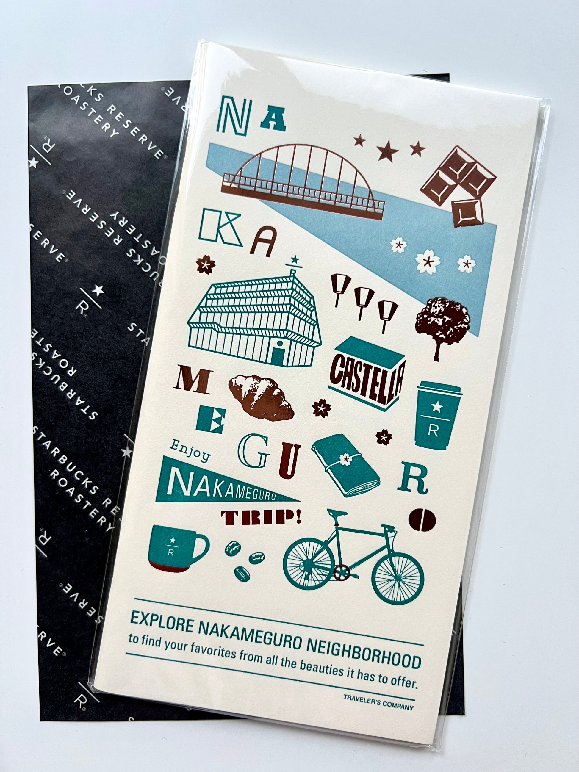 Starbucks Reserve Roastery Traveler's Notebook refill (no ruled). Roastery The cover is an artwork with various motifs of Nakameguro, where Tokyo is located. Finished with a textured print and foil stamping using a method called letterpress printing.