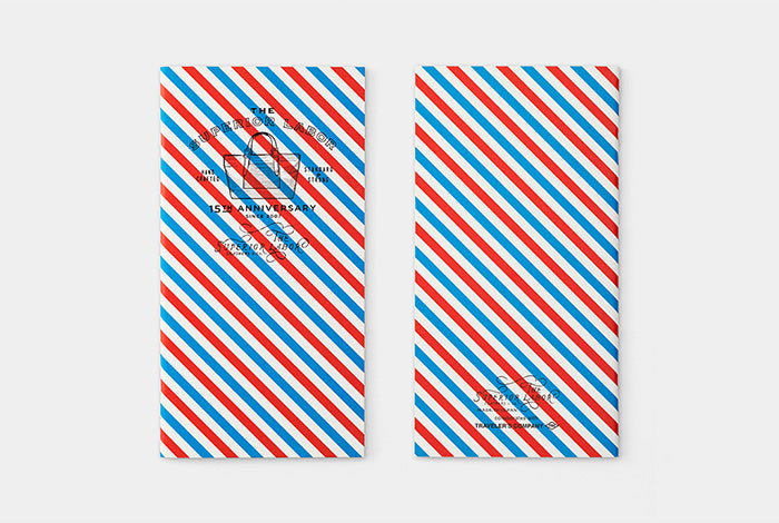 The cover of the refill features a tricolor stripe print and the 15th anniversary logo is foil stamped on it. The inner paper is made of our original writing paper, "MD Paper Cream," which is designed for ease of writing.