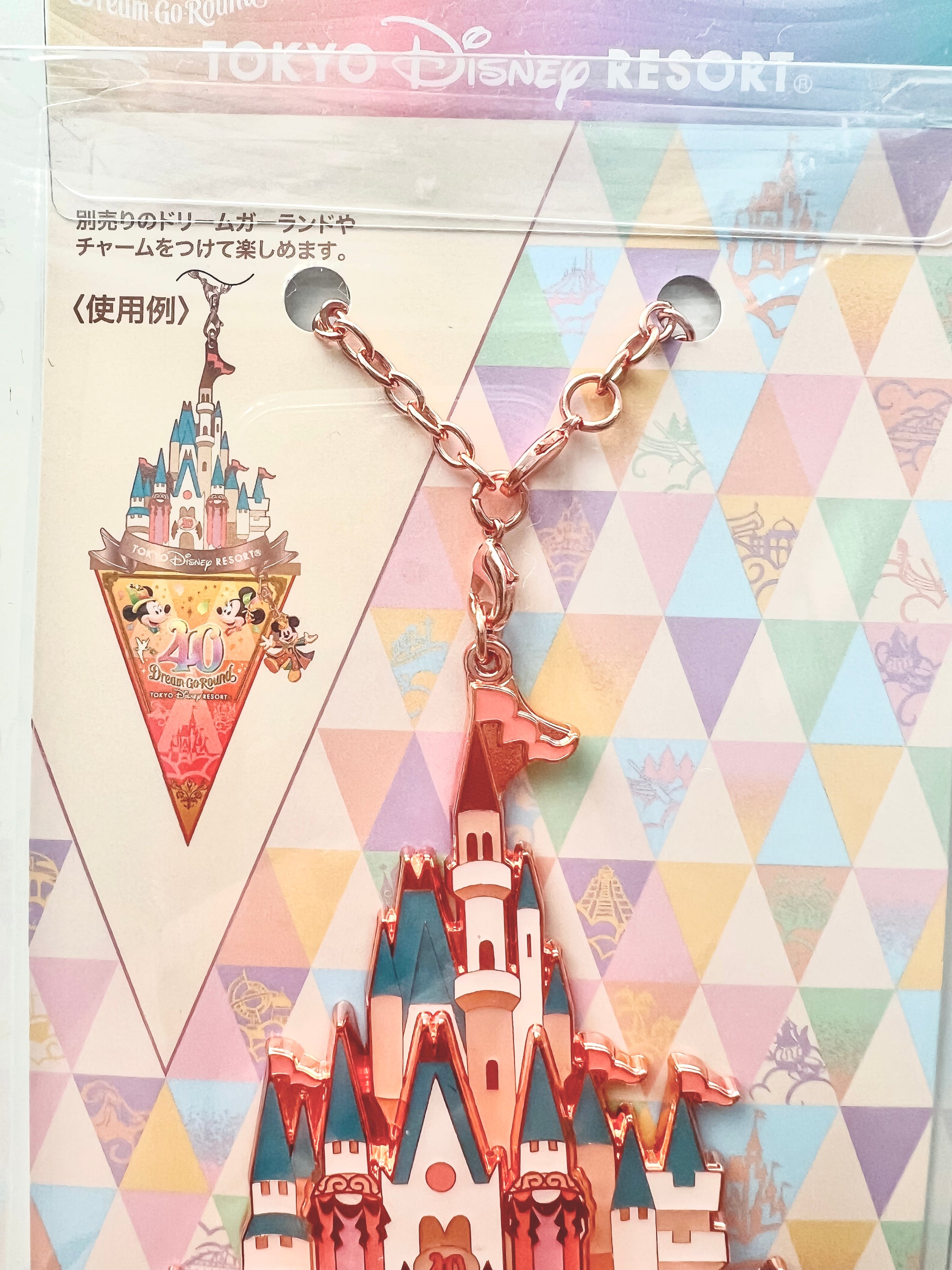 Tokyo Disney Resort 40th Anniversary Dream Go Round Cinderella Castle Garland Charm, that can also hold a garland via clip.